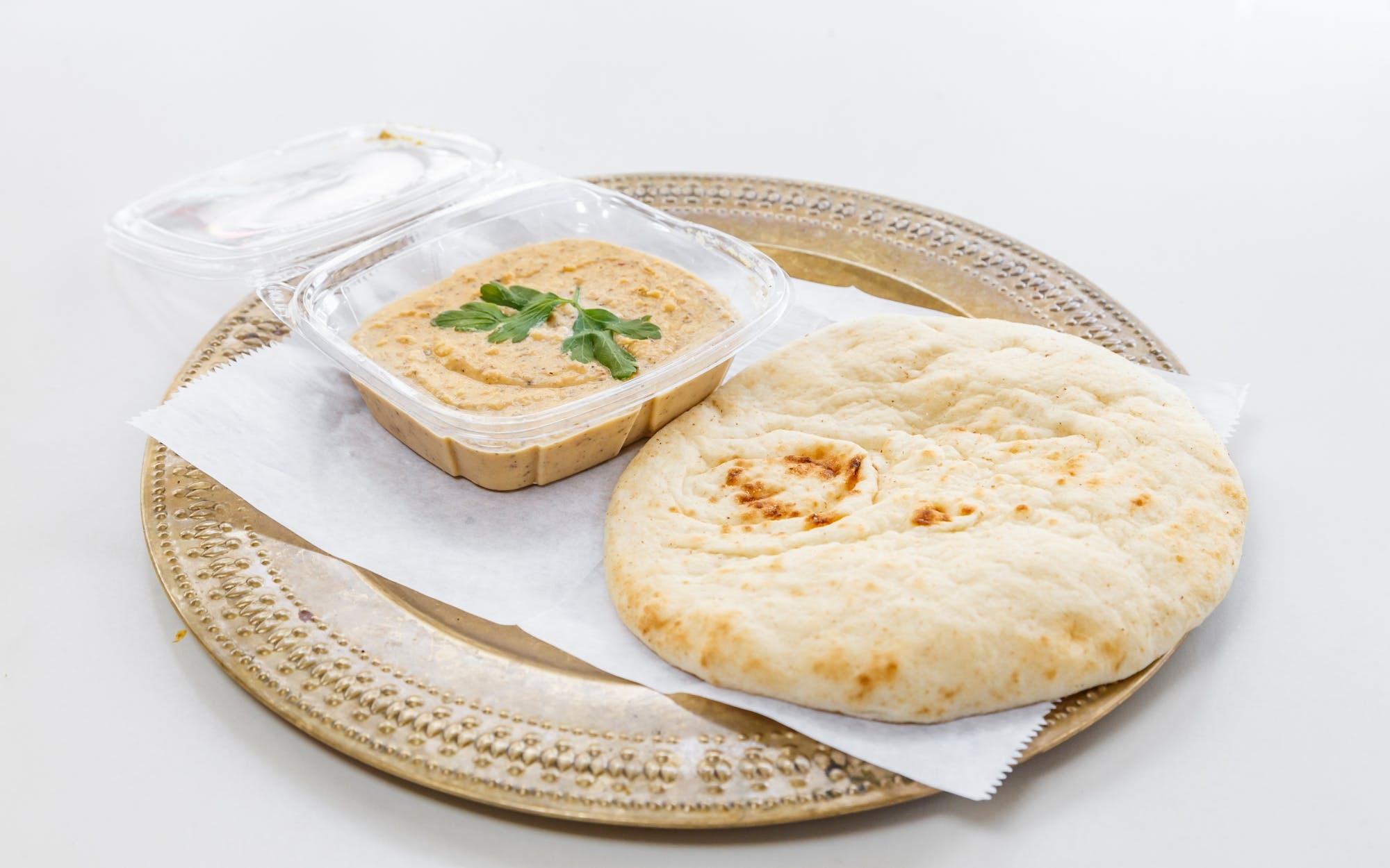 Chickpea paste, olive oil, lemon, tahini & seasonings with pita bread.
